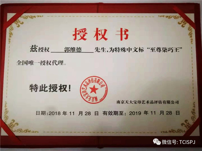 經(jīng)公司董事會商議決定:授權(quán)郭維德先生為我公司特殊中文標《至尊“柒”巧王》全國唯一代理。